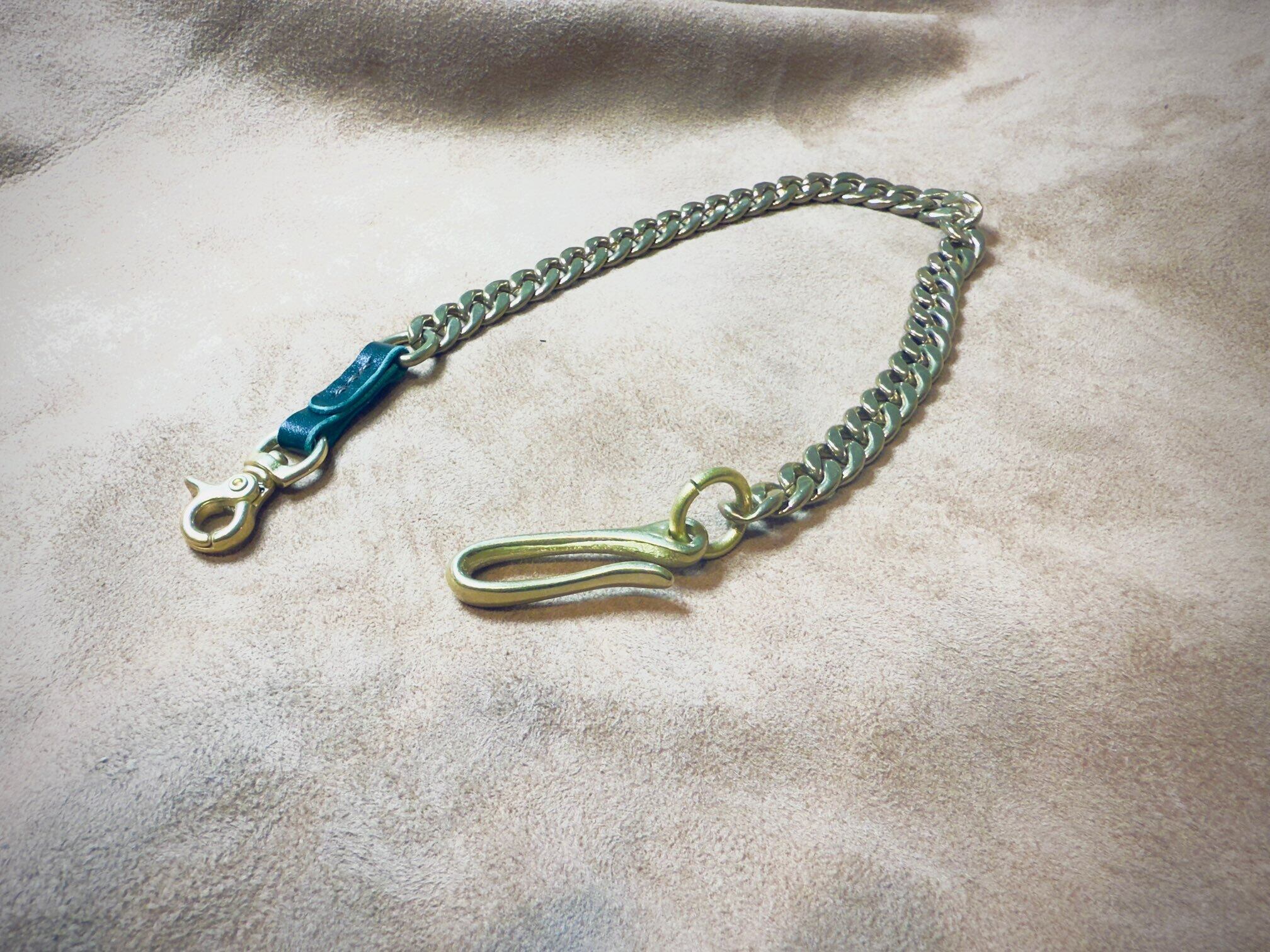 ウォレットチェーンは一部ウォレットと同じ革を使用し、全て真鍮金具にて作成しております。