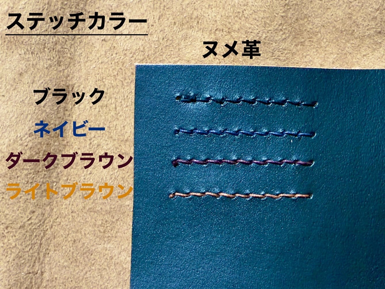 革の種類、糸のお色はご選択いただいたものと同一になります。