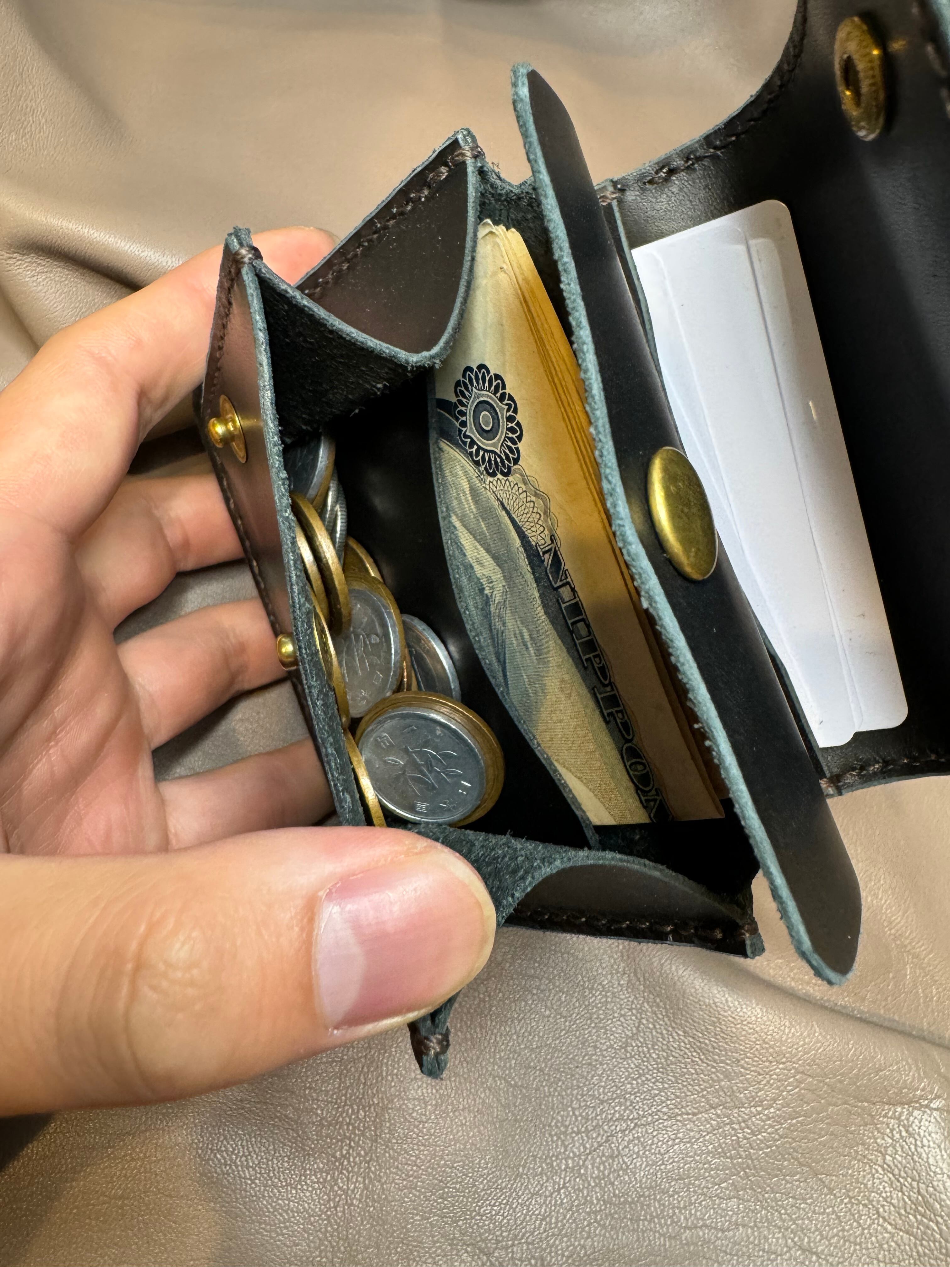 お札に関しましては、二つ折りで頭が飛び出さないサイズになっております。